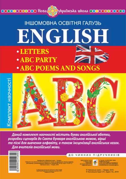 Комплект наочності Англійська абетка Вірші Сценарії свята Букваря НУШ. Даний комплект наочності містить букви англійської абетки, розробки сценаріїв до Свята букваря англійською мовою, вірші та пісні для вивчення алфавіту, а також інсценізації англійських казок.