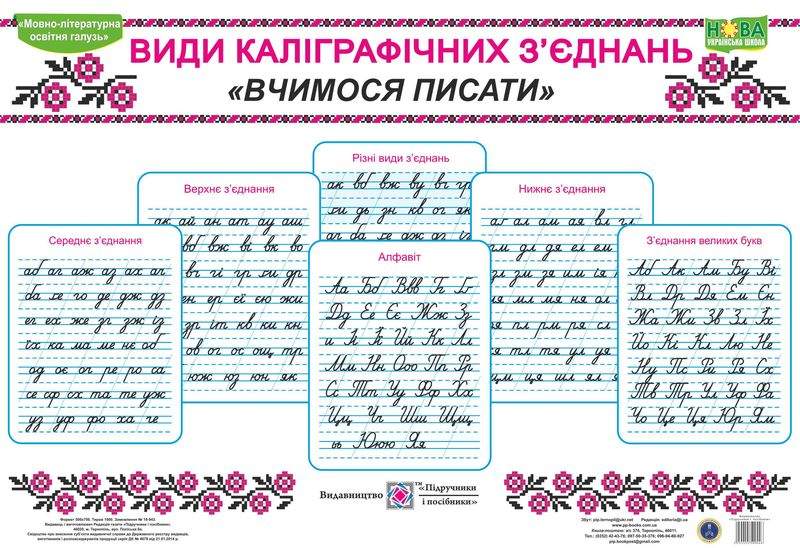 Комплект таблиць Види каліграфічних з’єднань Вчимося писати НУШ Підручники і посібники 21320