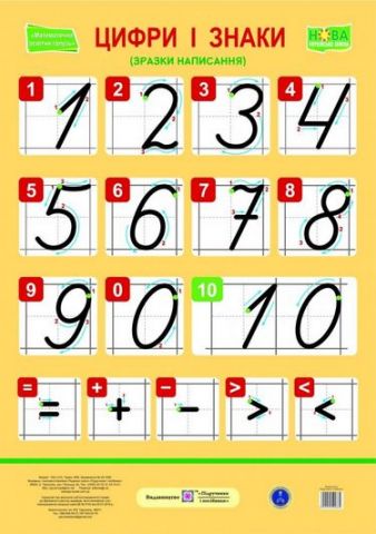 Плакат Цифри і знаки зразки написання А2 НУШ Математична освітня галузь Підручники і посібники 42832