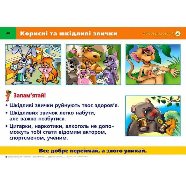 Я досліджую світ Основи здоров’я 2 клас Таблиці НУШ. Навчальний посібник у таблицях для 2 класу елемент дидактико-методичного комплекту, який рекомендується використовувати на уроках під час пояснення, закріплення, узагальнення знань, умінь та навичок учнів.