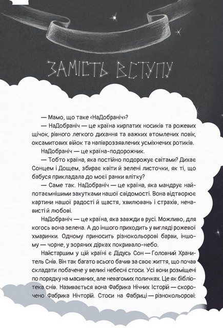 Трапляється, що певні механізми нашого світу виходять із ладу, і ми закриваємо себе на тисячі замків, ховаємо у мільйони потаємних скринь і боїмося туди зазирнути. На щастя, є Країна НаДобраніч, в якій живе великий мрійник Чимчикун, герой цієї книги, він знає, як відімкнути замки, зняти важкі засуви і відкрити скрині людського світу. Вирушайте в подорож з Чимчикуном, але стережіться, поряд чатує страшний чародійник Морок.