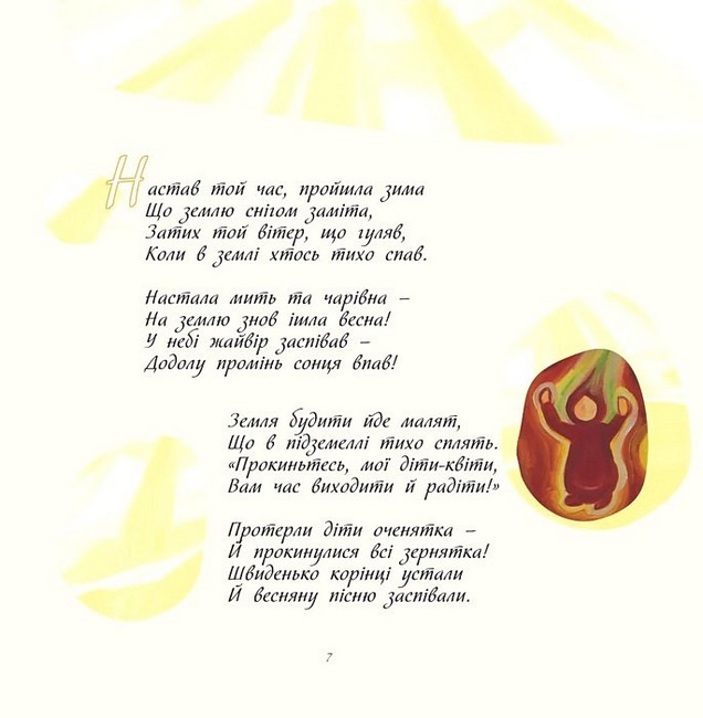 Надія Власій, натхненна ілюстраціями книжки про діток-корінців німецької письменниці минулого століття Сибілли фон Олферс, написала текст для лялькової вистави, яку весною 2013 року батьки вальдорфської школи «Софія» у Києві показали своїм дітям-першокласникам. Ілюстрації олією вона створила вже пізніше, через три роки, в післяріздвяний час, коли в землі, готуючись до весни, знову починає прокидатися життя. Наразі Надія працює вчителем математики та фізики у вальдорфській школі в Штеффісбурзі у Швейцарії.