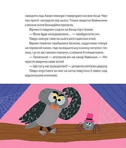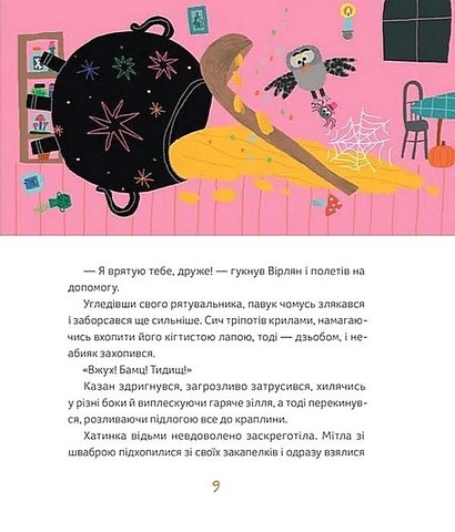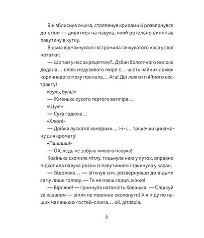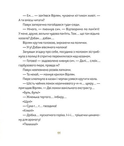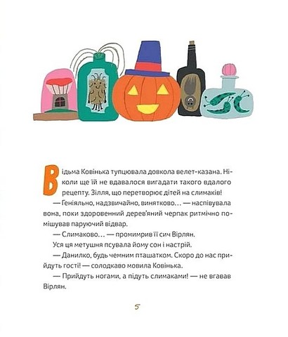 Відьма Ковінька недолюблює дітей. Тому… запрошує їх у гості, аби почастувати магічним зіллям, звареним за своїм особливим рецептом. Проте відьма не здогадується, що її вірний сич Вірлян випадково змінив складники. Тож коли поріг переступають троє малих гостей, які заблукали в лісі, усіх чекає несподіванка! А читачів — ще й рецепт магічного зілля для затишних осінніх вечорів.