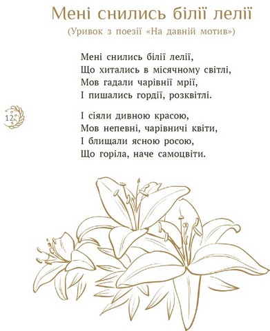 Поезії Лесі Українки співучі й мелодійні, вони є джерелом пізнання, у яких перемагає життєстверджувальний настрій. Читайте і насолоджуйтесь гармонією поетичного світу Лесі Українки.