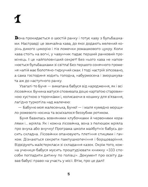 Де беруться бабусі? Це лісовички з казкового лісу. З дитинства вони навчаються всіляких бабусяцьких прийомчиків і хитрощів, а потім їдуть у місто виконувати бабусяцьку місію. Та перш ніж отримати своє персональне онуча, кожна складає іспит на звання супербабусі. Цього разу все сталося не так, як гадалося! Легковажну лісовичку Бусю обманули й викрали, а її суперниця Буня разом з єнотом Шкодою вирушають на її пошуки. На шляху вони зустрічають курочку Касю, пана Болотяна, Івана Целофановича Макулатурського, збитошних Бомка і Цьомка... «Як виростити супербабусю?» розповість про магію справжньої дружби та підтримки. Усередині книжки читачів чекає особливий сюрприз — інтерактивна настільна гра з картками й фішками для забав з друзями чи родиною.