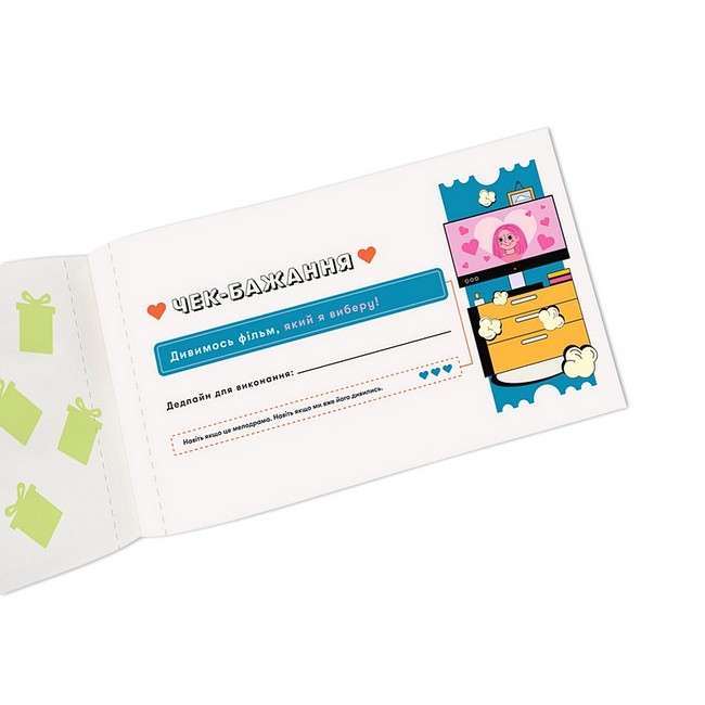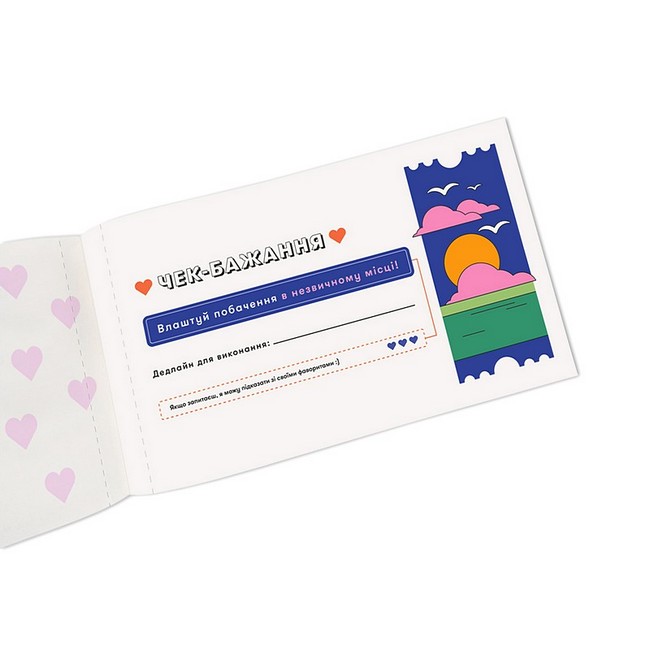 Чекова книжка бажань для пари «Романтика» — 32 чеки на завдання, які дозволять відкрити нові аспекти стосунків та як мінімум 32 рази відчути моменти найглибшої близькості.