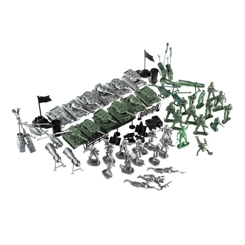 Упакованный в картонную коробку, набор будет отличным подарком для мальчика от 3-х лет: большой набор, состоящий из различных сооружений военного назначения и не только, специального снаряжения, солдат, боеприпасов, танков и многого другого, не оставит равнодушным ни одного мальчишку!