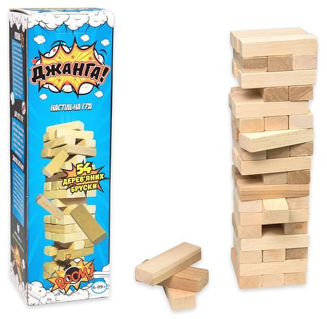 Сенс простий: потрібно зібрати високу дерев'яну вежу, а потім повільно виймати кожен брусочок. Перемагає найакуратніший, який зможе не зламати будову. У процесі виймання брусочків потрібно стежити за рухами, адже один жест – і башта розпадеться! Для перемоги потрібно навчитися вчасно оцінювати ризик, координувати свої дії. Це важливі навички, які завжди стануть у нагоді в житті.