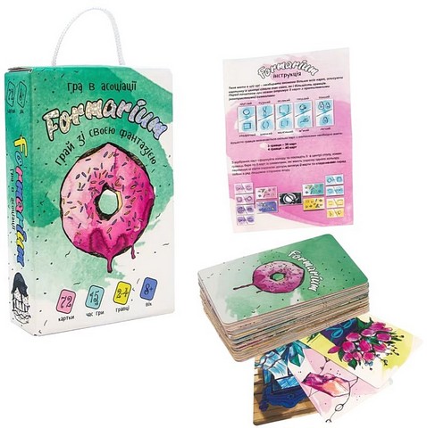 «Formarium» (Формаріум) – фантастична карткова гра в асоціації. У грі ви знайдете 72 картки, серед яких будуть карти з малюнками і карти з різними властивостями. Мета гри – вгадувати властивості карток в центрі столу, так само, як і більшість гравців. У ситуації, коли всі гравці виклали однакову властивість, або все різне – ніхто не заробляє бали. З настільною грою «Formarium» ви переконаєтеся, що кожна людина в однакових предметах бачить абсолютно різні форми і характеристики! Це дуже захоплююче!