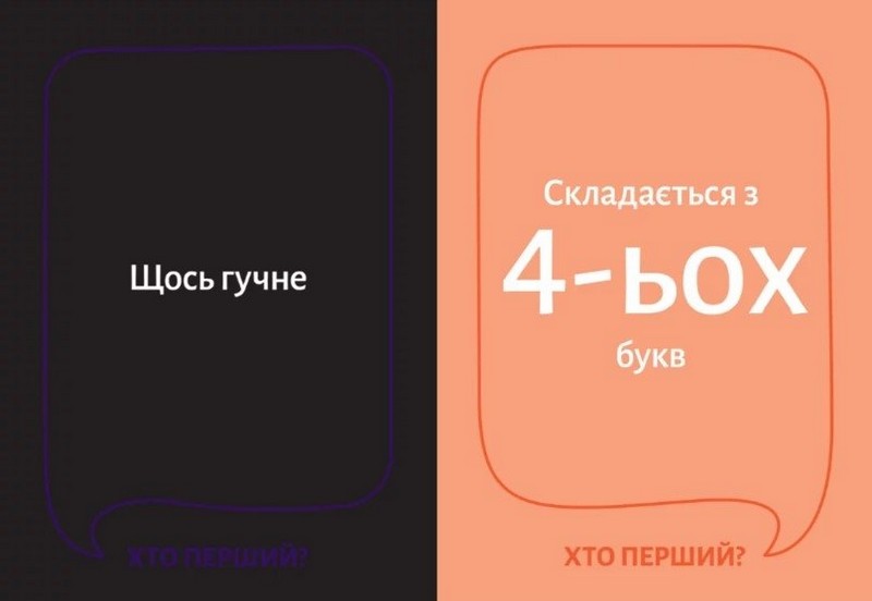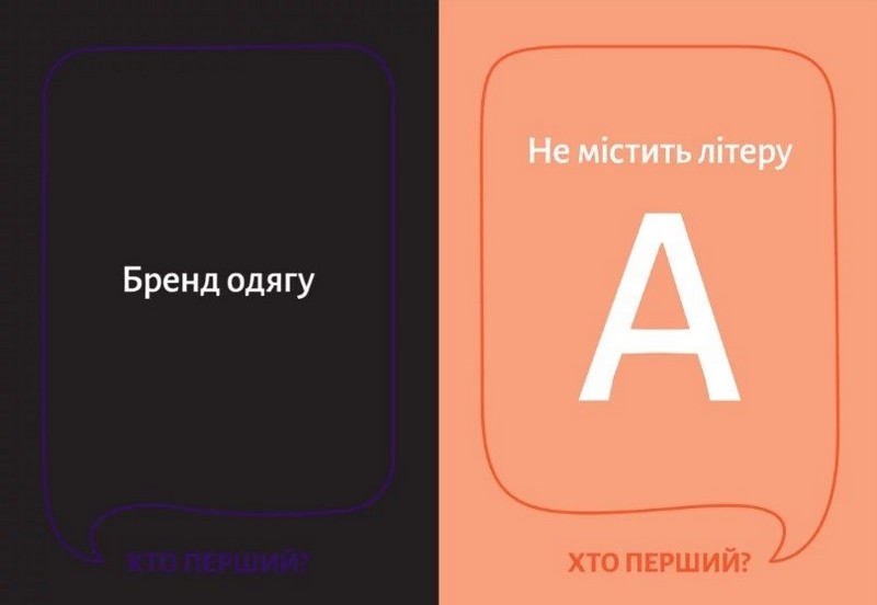 Настільна гра на швидкість та словниковий запас. Весела та швидка гра, де потрібно першим назвати слово, яке підходить до заданих умов.