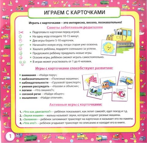 Игровые карточки, раскраски и развивающие задания ждут вашего малыша на каждой страничке этой замечательной книжечки.