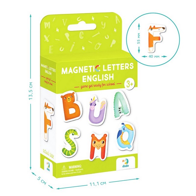 Вивчаємо англійську з яскравими магнітами. Кожен пазлик — одна літерка, що по формі та кольору нагадує тварину, назва якої починається з потрібної літери. Це ж подвійна користь — дитина вивчає літери алфавіту та назви тварин. Магнітні ігри — новий формат розвиваючих ігор від улюбленого бренду. Все що для них потрібно — металева поверхня та самі магніти, які так гарно кріпляться до неї.