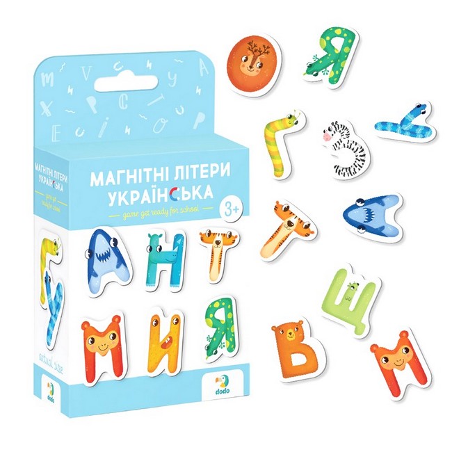 Вивчаємо українську з яскравими магнітами. Кожен пазлик — одна літерка, що по формі та кольору нагадує тварину, назва якої починається з потрібної літери. Це ж подвійна користь — дитина вивчає літери алфавіту та назви тварин. Магнітні ігри — новий формат розвиваючих ігор від улюбленого бренду. Все що для них потрібно — металева поверхня та самі магніти, які так гарно кріпляться до неї.