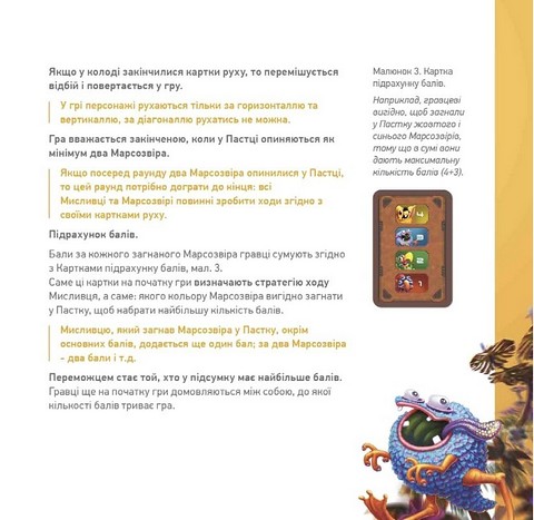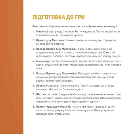 Мисливці мають загнати Марсозвірів у Пастку і отримати за них бали. Усі персонажі гри ходять згідно зі своїми картками, на яких стрілки показують напрямок руху.