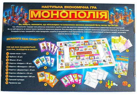 В оновленому дизайні! Ви, мабуть, вважаєте, що мільйонером та власником великих компаній бути легко. Це не так. Гра «Монополія» подарує вам унікальну можливість пройти шлях від простого менеджера до генерального директора великої корпорації. Ви на собі відчуєте, як важко інколи прийняти правильне рішення. Яку важливу роль відіграє у бізнесі правильно продумана стратегія та чіткий план. Укладайте угоди, продавайте свою продукцію, купуйте й продавайте акції підприємств, отримуйте рекомендації солідних людей і досягайте вершин великого бізнесу!