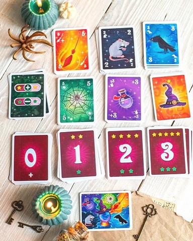 \nПеред кожним раундом гравці "зазиряють" у магічну кулю й вгадують, скільки перемог здобудуть. Вгадав? Отримай бонус! Помилився? Втрати бали! У хід ідуть карти чаклунства, капелюхи відьми, зілля та трохи хитрощів.