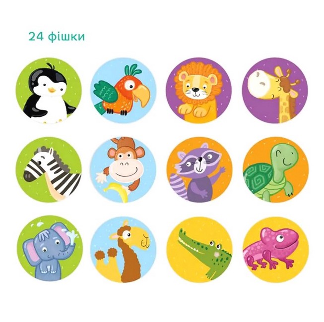 У наборі - 24 парні картинки-фішки (тобто 12 пар) із зображеннями різних емоцій. Мемо-гра допомагає розвинути у дітей пам"ять, увагу, а також вчить їх командній грі.