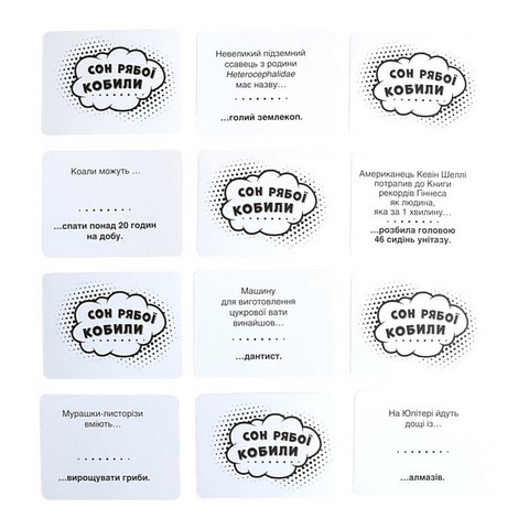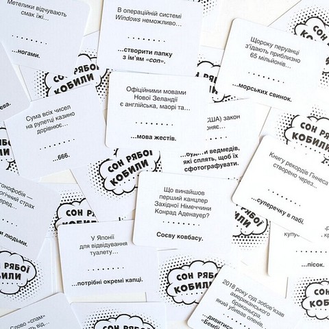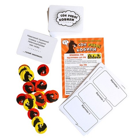- Весела настільна гра-вікторина з креативом і блефом - гравці вигадують фейкові відповіді, щоб заплутати суперників