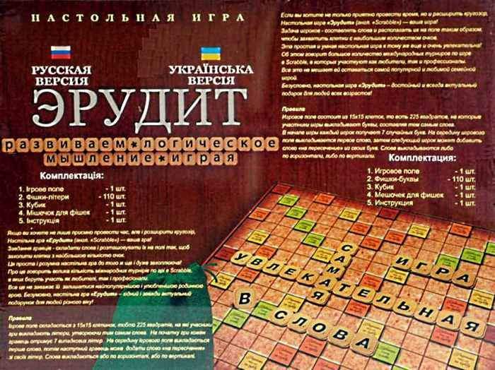 Настольная игра Эрудит DT G4-UA Danko Toys. Параметры настольной игры: размер упаковки: 39х28х4,5 см; рекомендовано для детей от 6-ти лет.