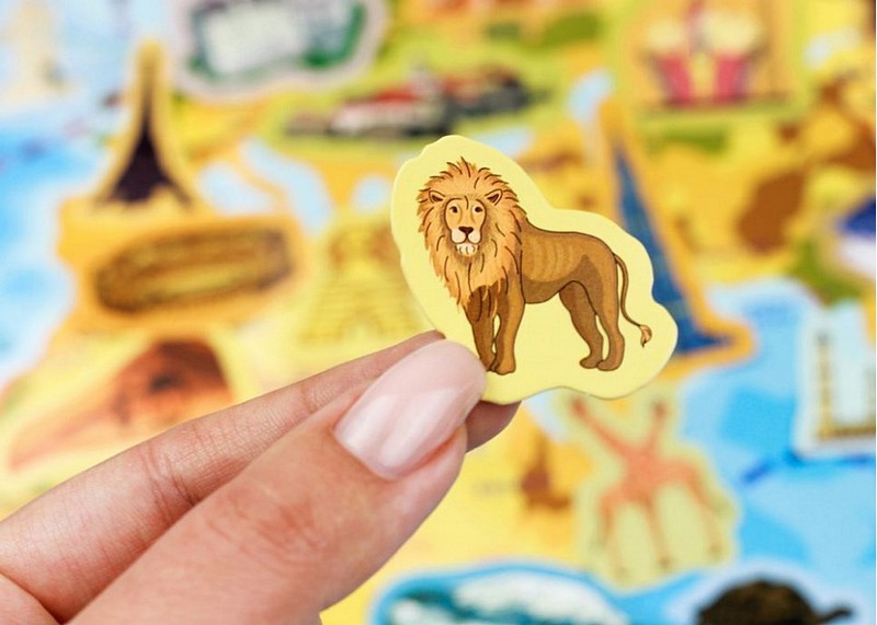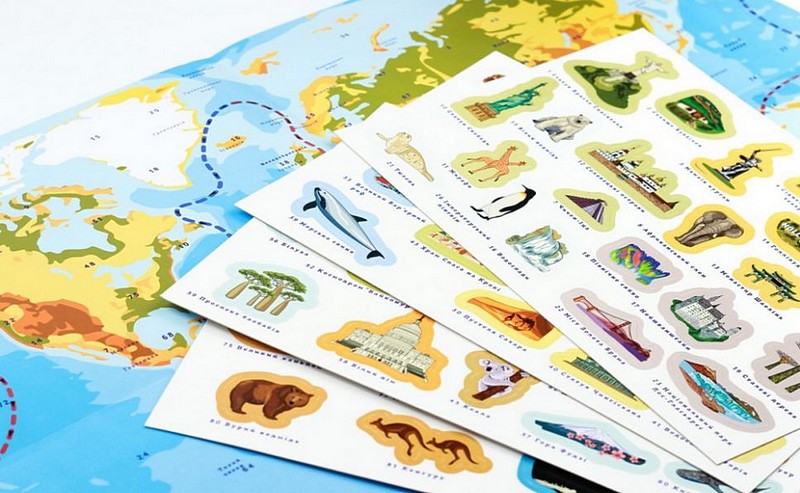 Склад: ігрове поле 41х60см, багаторазові наліпки–83 шт., коробка із шнурком.
