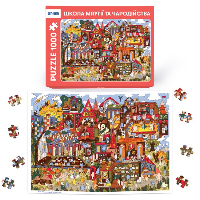 Пазл «Школа Мяугії та чародійства» — ідеальне доповнення ваших затишних вечорів. Купуйте пазл, готуйте гарбузові напої та пироги, та налаштовуйтеся поринути у справжні мяугічні пригоди.