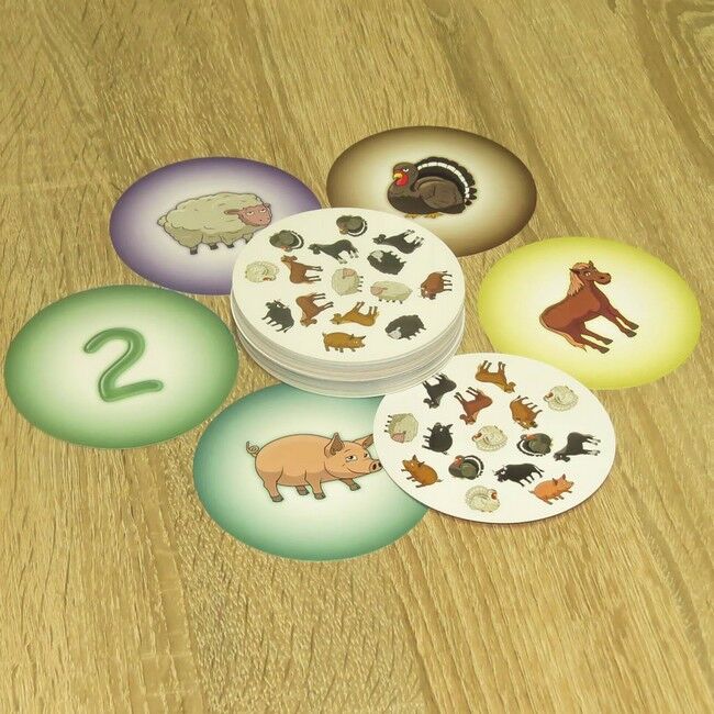 МЕТА ГРИ: в залежності від зображення на «сорочці» картки (цифра або тварина), гравцям необхідно якнайшвидше знайти або порахувати потрібну нам тварина. Той у кого в кінці гри буде більше зібраних карток, стане переможцем.