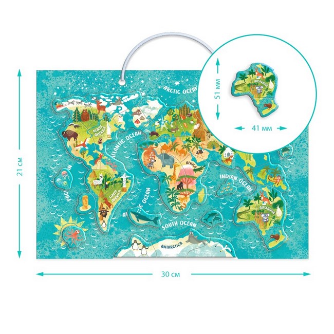 Розвиваюча гра Dodo "Магнітна мапа світу: Тварини" — чудовий спосіб для дитини познайомитися зі світом природи та різноманіттям тварин на різних континентах. У наборі є магнітна дошка з картою світу, 36 магнітних елементів із зображеннями тварин, що живуть у певних регіонах, а також шнурок для зручного зберігання на стіні дитячої.