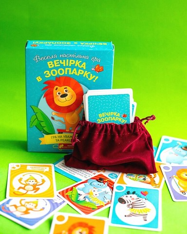 \nЗавдання — швидко реагувати, бути уважним і першим позбутися всіх карток, щоб стати зіркою зоопаркової вечірки.