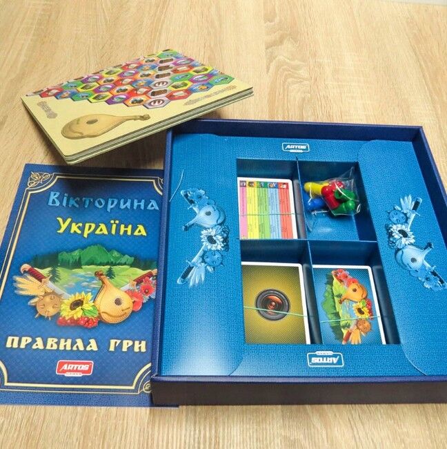 «Вікторина Україна» – це інтелектуально-розважальна гра, покликана закріпити або набути нові знання про Україну. В ній питання представлені у вигляді тестів по таким категоріям як: «Історія», «Культура», «Географія», «Загальні питання», «Україна в цифрах». Також в наявності є окремі карточки «Фотопитання».