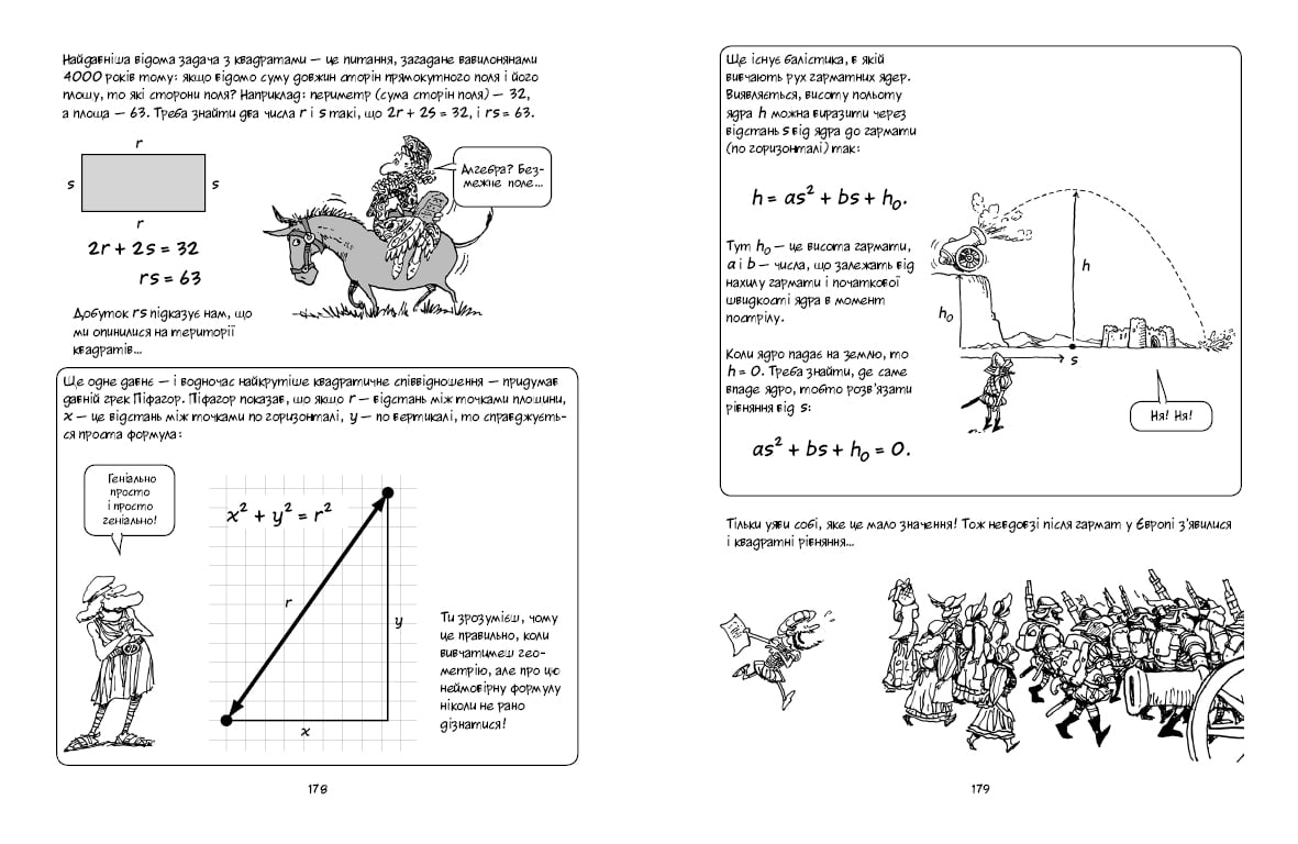 Нова книжка відомого карикатуриста Ларрі Ґоніка, що вивчав і викладав математику?в Гарвардському університеті, — це цікавий курс алгебри, що охоплює основні теми шкільної програми, зокрема лінійні рівняння, многочлени, квадратні рівняння і побудови графіків.