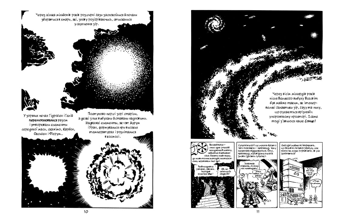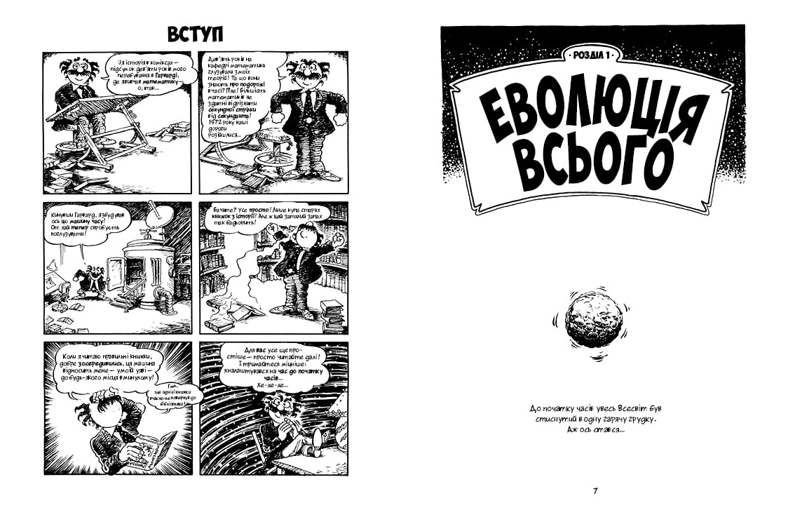 Всесвітня історія Том 1 Від Великого вибуху до походів Александра Македонського Рідна Мова. Історія людства в оригінальному потрактуванні Ларрі Ґоніка не має собі рівних. Починаючи з теорії Великого вибуху й «еволюції всього», книжка охоплює понад три мільярди років — від виникнення клітинних форм життя й наступних епох викопної флори та фауни, включаючи царство динозаврів, й аж до появи перших гомінідів. Завдяки вдало поданій інформації можна легко скласти уявлення про високорозвинені давні цивілізації — шумерів, хетів, ассирійців і євреїв. Легко й дотепно художник змальовує життя правителів, воїнів і рабів — усі вони зробили свій внесок у становлення західної цивілізації.