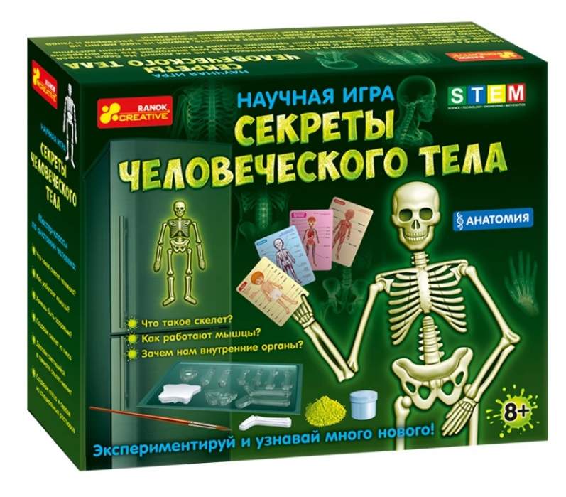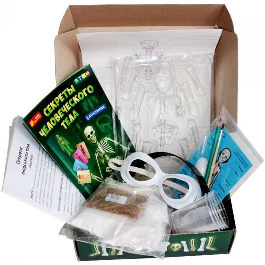Наукова гра Секрети людського тіла 8+ Ранок. Діти дуже люблять досліджувати своє тіло і завжди хочуть знати, що і як в ньому працює. Багатофункціональний набір допоможе їм у розкритті таємниць світу анатомії! У ньому є все, що знадобиться для вивчення людського тіла.