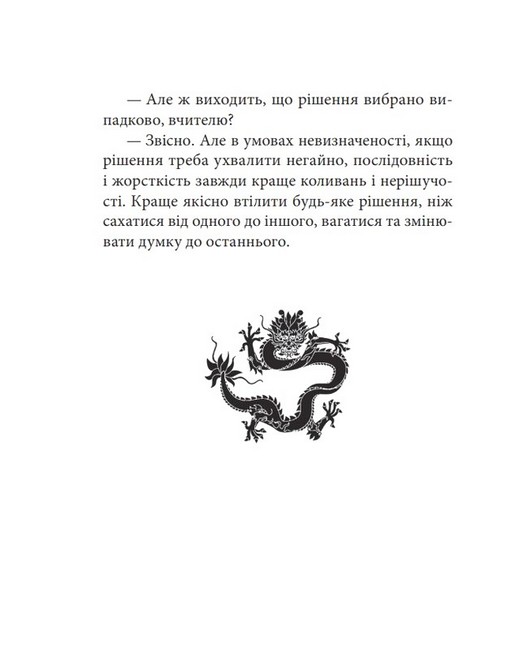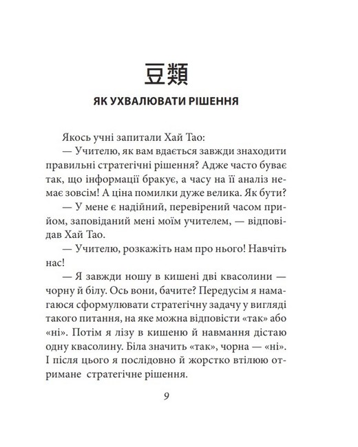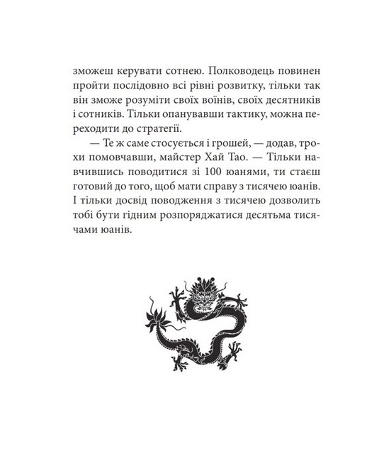 Стратегічне мислення, хоч і з’явилося дві з половиною тисячі років тому, є вираженням духу сучасності й поки що надбанням небагатьох. Як навчати стратегічного мислення? Підручники не допоможуть, лише особиста участь у стратегічних іграх, а ще оповідки, притчі — найдавніший жанр людської творчості, який знову набув актуальності у ХХІ сторіччі. Саме в такому жанрі книжка викладає здобутки світової стратегічної думки останніх двохсот років. Як і будь-які східні притчі, тут вони часто мають другий, прихований від квапливого погляду рівень. Основні принципи стратегії єдині для війни, бізнесу, дипломатії та політики, адже в усіх випадках ми маємо справу з противником, найчастіше стійким, розумним і розважливим, і так само єдині принципи управління людьми — носіями вільної волі та власного погляду на світ.