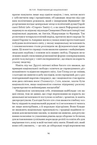 \nЙорам Газоні пропонує цілком інший погляд. Уміло переплітаючи минуле й теперішнє, від часів Мойсея до сучасних конфліктів на Близькому Сході, він наводить власні аргументи на користь того, що саме націоналізм і породжені ним національні держави є найкращою з наявних форм політичного устрою як для окремих спільнот, так і для міжнародного ладу.