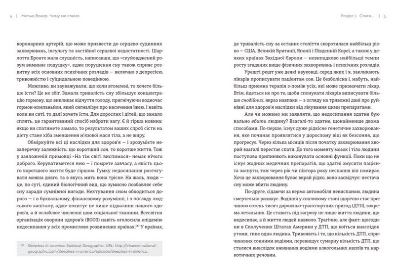 То яким є природний сон? Чому ми бачимо сновидіння і чи можемо ними керувати? Хто спить лише половиною мозку? Як змінюється сон упродовж людського життя? І як врешті подолати безсоння? На ці та безліч інших запитань Метью Вокер дає нам вичерпні, науково обґрунтовані відповіді.