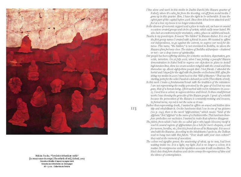 Протягом 40 років життя в Афганістані формували війни, руйнування спадщини, терористичні атаки та міграції. Сьогодні художники в цій країні - самоучки, які виросли за часів режиму талібів, що забороняв зображення, або формально навчалися в еміграції - не мають спадщини, про яку можна було б домовлятися, і правил, які можна було б порушувати: все здається можливим. Багато робіт, включених до цієї виставки, безпосередньо стикаються з травмами країни, як-от «Фархунда» Латіфа Ешрака, що зображує самосуд натовпу над Фархундою Малікзадою, яку неправдиво звинуватили у спаленні Корану.