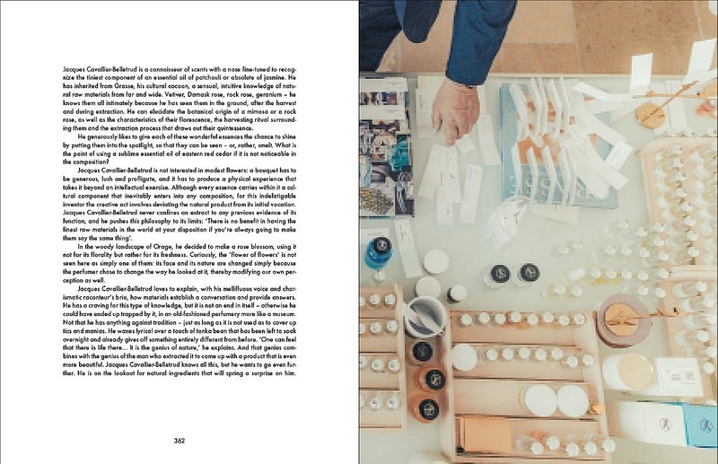 З ексклюзивним особистим доступом до головного парфумера Louis Vuitton, Жака Кавальє-Бельтруда, ця книга досліджує джерела сировини, методи її збору, а також те, як ефірні олії екстрагуються, дистилюються та складаються для створення нових і складних ароматів.