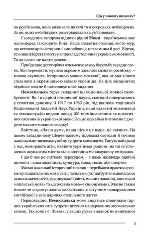 Новий авторський виданок наголошує на питомій синтаксі української мови супроти кальок, які нас десятиріччями змушували переймати з мови московської. Словник розкриває лаконічну природу рідної мови та пропонує читачам її розлоге фразеологічне багатство. Немоскалька насамперед є начасним виданням на тлі московитського вторгнення в Україну. Це якнайкраща спонука зросійщеним українцям заговорити мовою рідного народу.