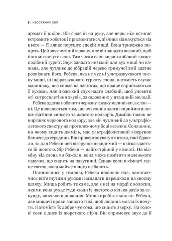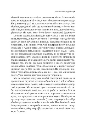 \nЯк тварини використовують свої органи чуття? Нюх і смак? Дотики, вібрацію, слух? А як вони бачать? Який їхній світ кольорів? Автор допомагає зазирнути всередину видосвітів тварин і відкрити чимало таємниць.