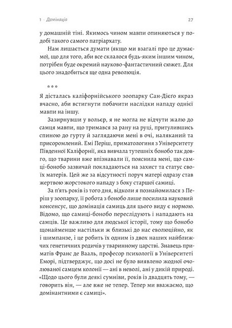 Опираючись на дослідження археології, антропології та стародавньої історії, авторка доводить, що ні гендерна рівність, ні патріархат не є чимось заздалегідь визначеним.