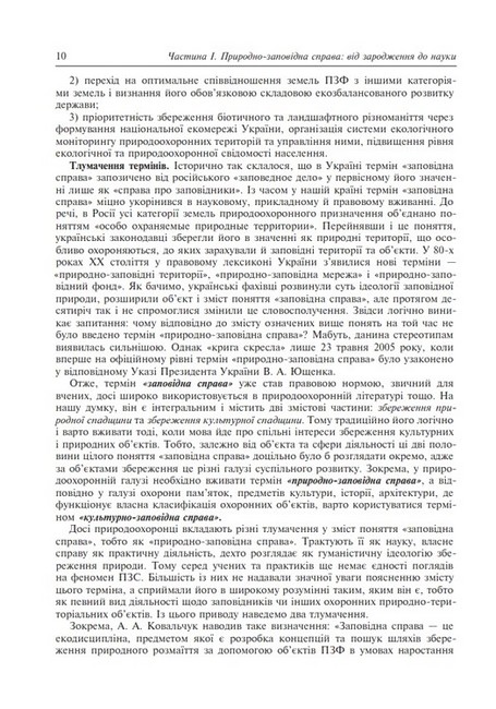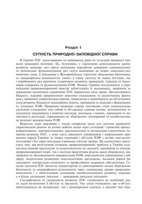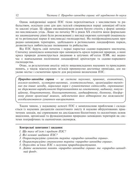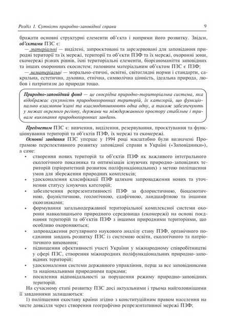 У підручнику з урахуванням зарубіжного досвіду на сучасному науковому та еколого-освітньому рівнях узагальнено знання з теорії та практики природно-заповідної справи. Висвітлено актуальність, історію, особливості заповідної науки, класифікації, формування, функціонування та системні основи організації оптимальної структури природно-заповідних територій та їх мереж, природоохоронної діяльності установ природно-заповідного фонду. Акцентується увага на новітніх знаннях про екомережу та екозбалансований розвиток системи природно-заповідних територій.