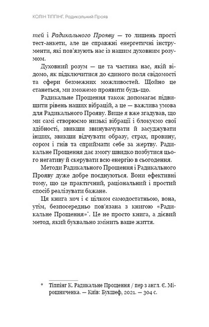 Колін Тіппінг, автор духовної технології Радикального Прощення, пропонує радикальний, однак цілком практичний підхід до свідомого створення омріяного майбутнього. Він показує, як ви можете налагодити своє життя й наповнити його достатком, радістю, здоров’ям, миром, цілісними стосунками, щастям.