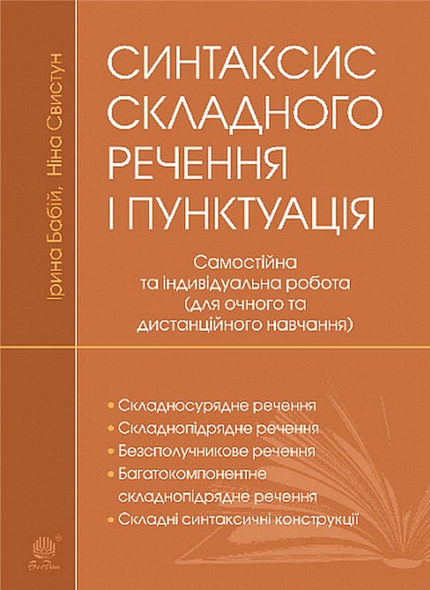 У посібнику запропоновано авторську концепцію створення посібників із самостійної роботи для здобувачів вищої освіти в умовах сучасних європейських орієнтирів, вміщено завдання для самостійних робіт, тести, перелік запитань для перевірки рівня фахової компетентності, схеми аналізу та зразки розборів різних типів складних речень, складних синтаксичних конструкцій. Навчально-методичний посібник «Синтаксис складного речення і пунктуація. Самостійна та індивідуальна робота (для очного і дистанційного навчання)» укладено на основі відповідних положень щодо підготовки фахівців у сфері лінгвістичної науки, норм та традицій вищої університетської освіти, а також профілю освітньо-професійної програми.