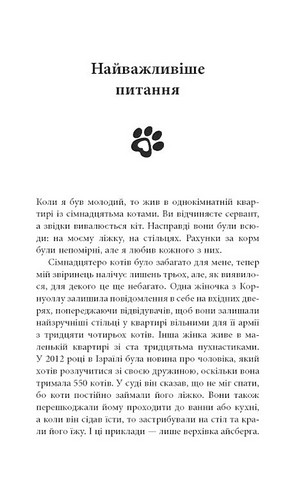 Чому кішка є найпопулярнішою хатньою твариною і чому люди люблять своїх пухнастиків так сильно? Беручи ці запитання за вихідну точку, Гербі Бреннан запрошує читача до таємничого світу котів, який він вивчав протягом життя. Щоб довести наявність у цих тварин надприродних здібностей, а також по-новому усвідомити роль котів у культурі та міфології різних країн та епох, автор звертається до міфів, фольклору та науки.