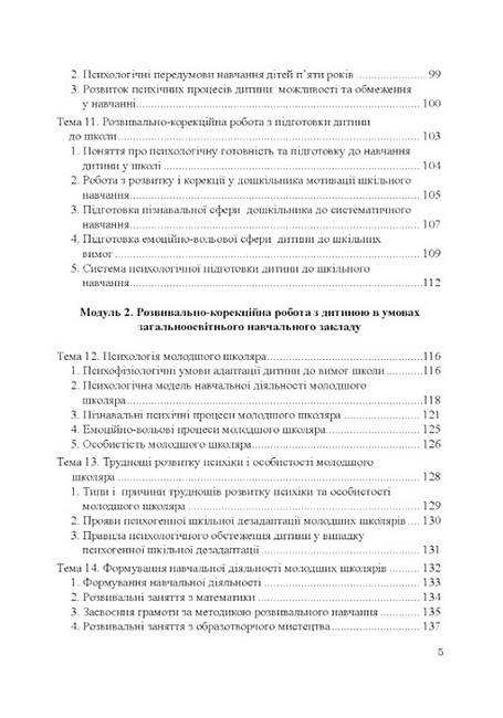 Проаналізовано психологічні особливості розвитку і корекції спілкування, діяльності, пізнавальних й емоційно-вольових процесів, а також особливості дитини у системі дошкільної та шкільної освіти. Зміст посібника складається з текстів лекцій, практичних завдань, додатків та списку літератури.