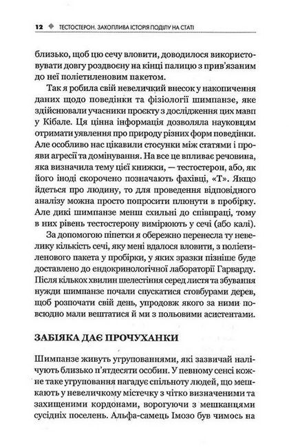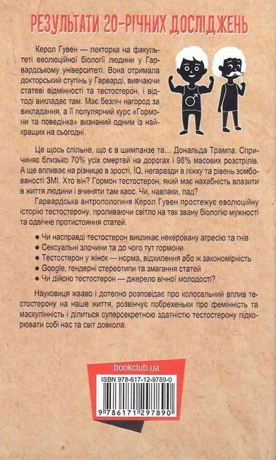 Науковиця жваво і дотепно розповідає про колосальний вплив тестостерону на наше життя, розвінчує побрехеньки про фемінність та маскулінність і ділиться суперсекретною здатністю тестостерону підкорювати собі нас та світ довкола.