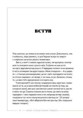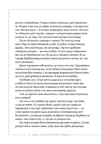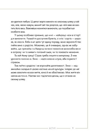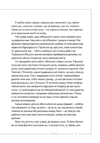 Не так уже й багато в житті задоволень, кращих за келих чудового вина. Але для декого радість від напою затьмарюється муками вибору і численними правилами та забобонами від так званих експертів. Ця книжка допоможе вам відкинути складнощі й навчитися головного — як без перешкод насолоджуватися прекрасним винаходом людства. Не зациклюватися на вартості, бо вона не завжди гарантує якість; не боятися ставити питання консультантам у магазині й сомельє в ресторані; не піддаватися впливу моди та брендів, а обирати саме те, що до вподоби вам. Перегорнувши останню сторінку, ви зможете як профі відкоркувати пляшку найкращого саме для вас вина, розлити його у правильний посуд і влаштувати з друзями незабутній вечір у себе вдома або запросити їх до ресторану і здивувати своїми знаннями винолюба.