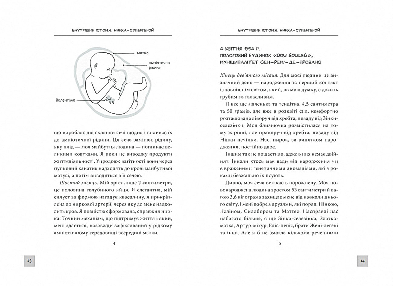 Уявіть, що одного дня ви познайомилися… зі своїми нирками. Бодай з однією з близнючок. І раптом вона починає розповідати вам про себе. Її вага — 150 г, на зріст десь 11 см завдовжки. Нирка каже: «Я маловідома та зневажена, бо знають мене лише як ту, що виробляє сечу в людському організмі. У той час як мої друзі — мозок та серце — вважаються «шляхетними», мене називають «квасолиною», у кращому випадку «бобом». Століттями мене пригнічує така малославетна репутація. Настав час врятувати мою честь і насамперед з’ясувати правду. Ось моя історія».