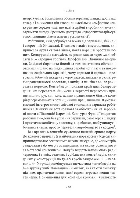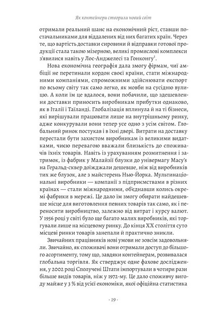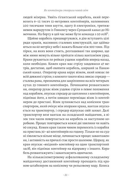 - Марк Левінсон змальовує портові міста, де стоїть гул вантажоперевезень, і демонструє, як контейнери змінили міські пейзажі й спосіб життя місцевих жителів, а звичайні пристані стали частиною масштабних економічних трансформацій.