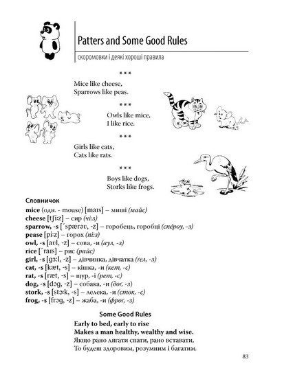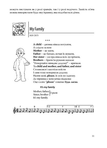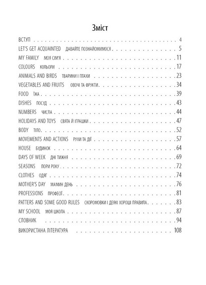У посібнику представлені вірші, пісеньки та ігри, що сприяють швидкому запам’ятовуванню англійських слів, виразів та цілих речень. Розвивальні ігри допомагають узагальнити і закріпити знання, вміння та навички, формуючи міцну мовну базу у дітей дошкільного віку та учнів початкових класів.